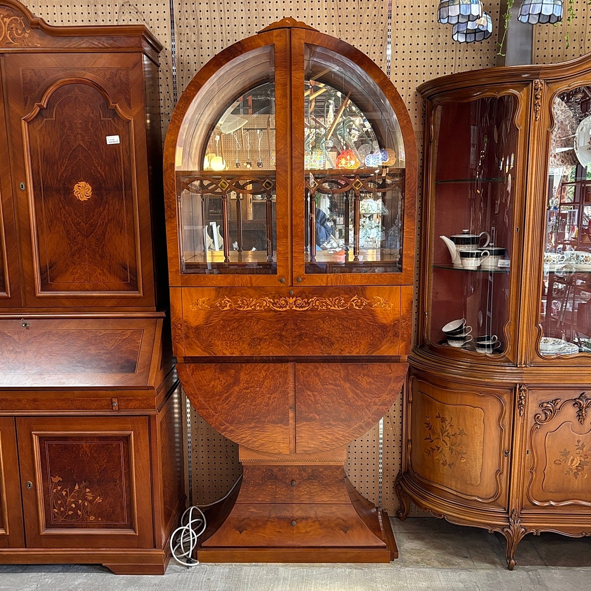 > 【福岡】イタリア製 ガラスキャビネット ショーケース ビューロー 収納 ディスプレイ 鏡面 クラシック 象嵌【KK1201-2】