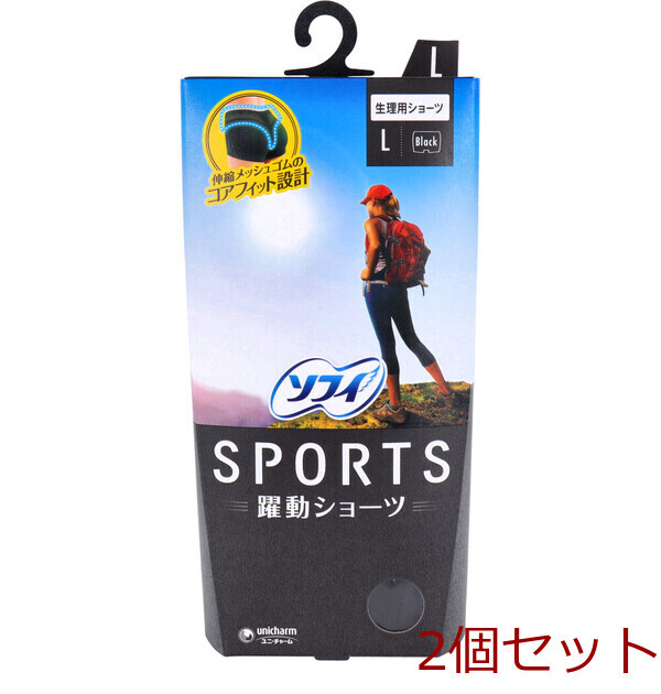 - ソフィ SPORTS 躍動ショーツ 生理用ショーツ Lサイズ ブラック 2個セット