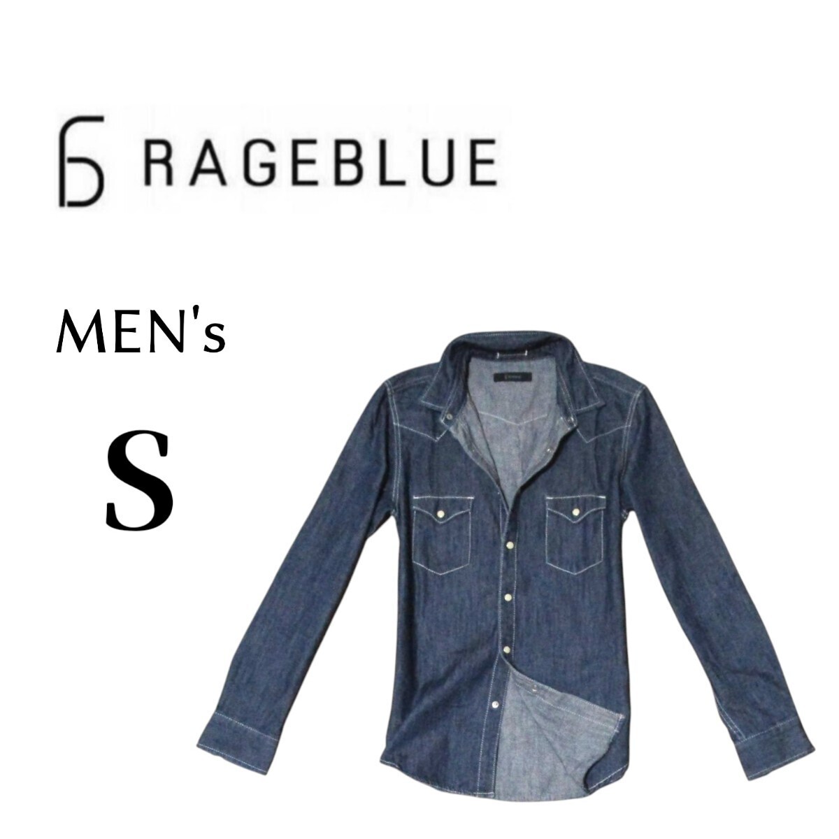 - 送料込み メンズSサイズ RAGE BLUE レイジブルー 長袖ウエスタンデニムシャツ