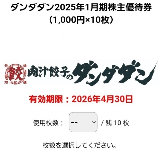 - NATTY SWANKY 肉汁餃子のダンダダン 株主優待券 10,000円 電子チケット ナッティスワンキー ダンダダン酒場 2026.4.30