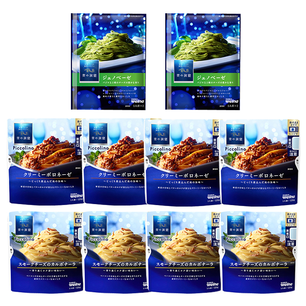 - ■青の洞窟 piccolino ジェノベーゼ・クリーミーボロネーゼ・スモークチーズのカルボナーラ 3種10袋(12食)■