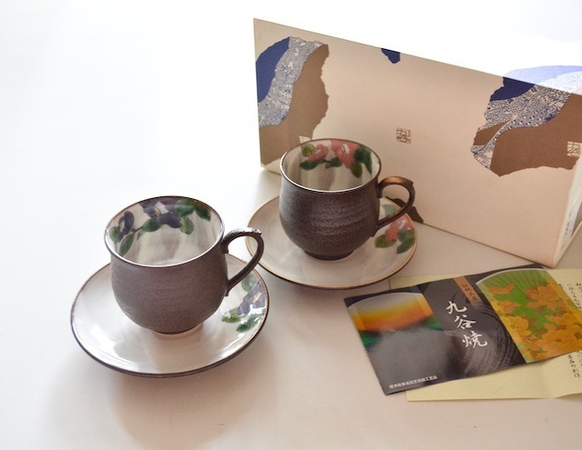 - 未使用【 九谷焼 青良窯 】和田昭男 椿 ペア カップ&ソーサー 2客
