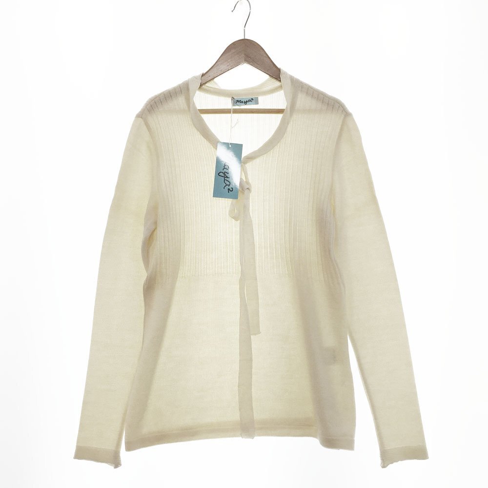 > ★未使用 maya2 マヤツー 長袖 ネックリボン ニットプルオーバー サイズ9号-11号 レディース オフホワイト チュニック セーター 1BB/93787