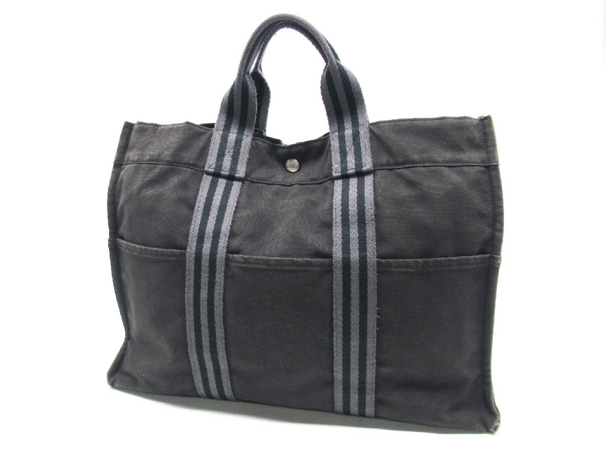 - ★【B送900円】2453 HERMES エルメス フールトゥMM トートバッグ ハンド キャンバス グレー系 シルバー金具 フランス製 綿100%