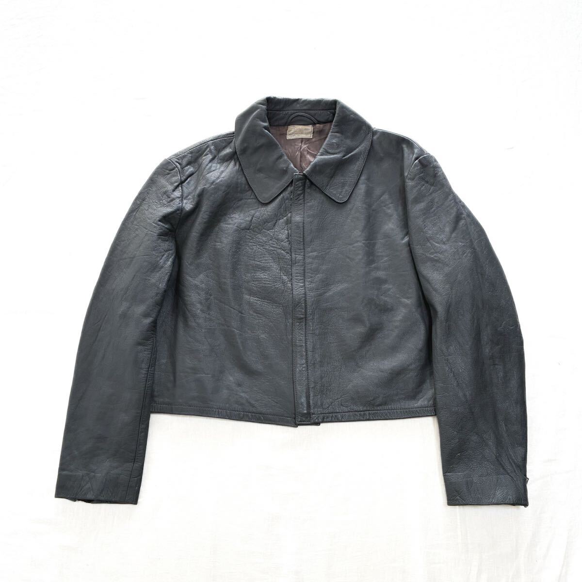> 希少 ドイツ軍 短丈 サブマリン レザージャケット 54 ブルゾン グレー 変型デザイン フランス軍
