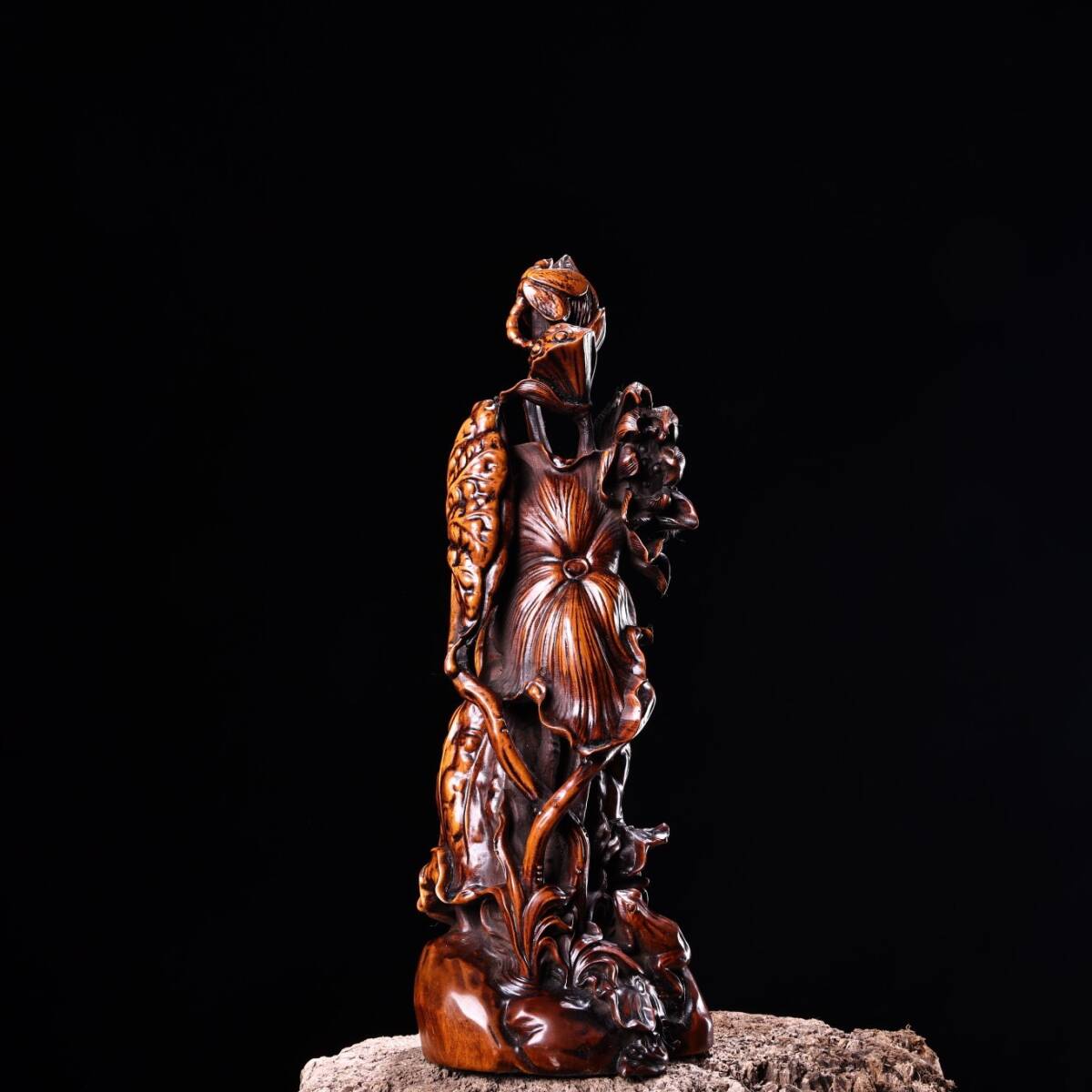 - 【超珍館蔵】黄楊木製 細密彫 年年有餘 置物 賞物 古賞物 古董品 古美術品 時代物 旧家蔵出 稀少珍蔵品