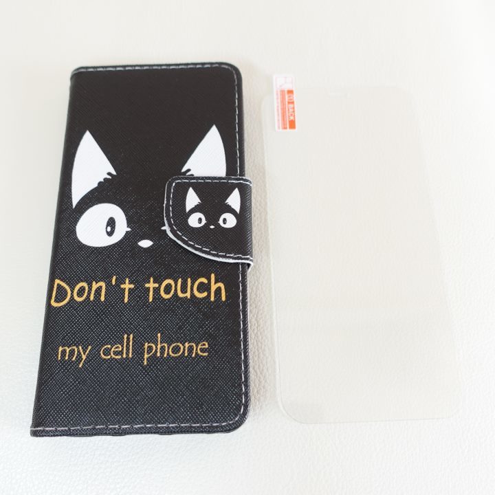 - 【2点セット】iPhone12 対応 レザーケース+ガラスフィルム ネコ 猫 黒猫ケース アニマル柄 スマホケース 手帳型