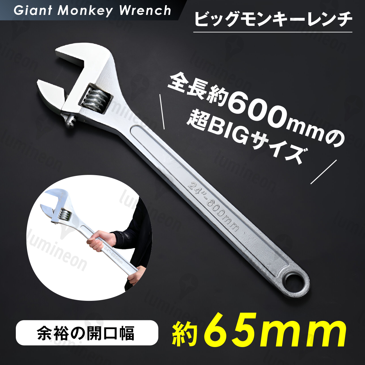 - モンキー レンチ スパナ 600mm 業務用 工場 船 アンカー ボルト 巨大 大きい 特大 サイズ 機械 建設 プレス 船体 重機 クレーン g214e 1