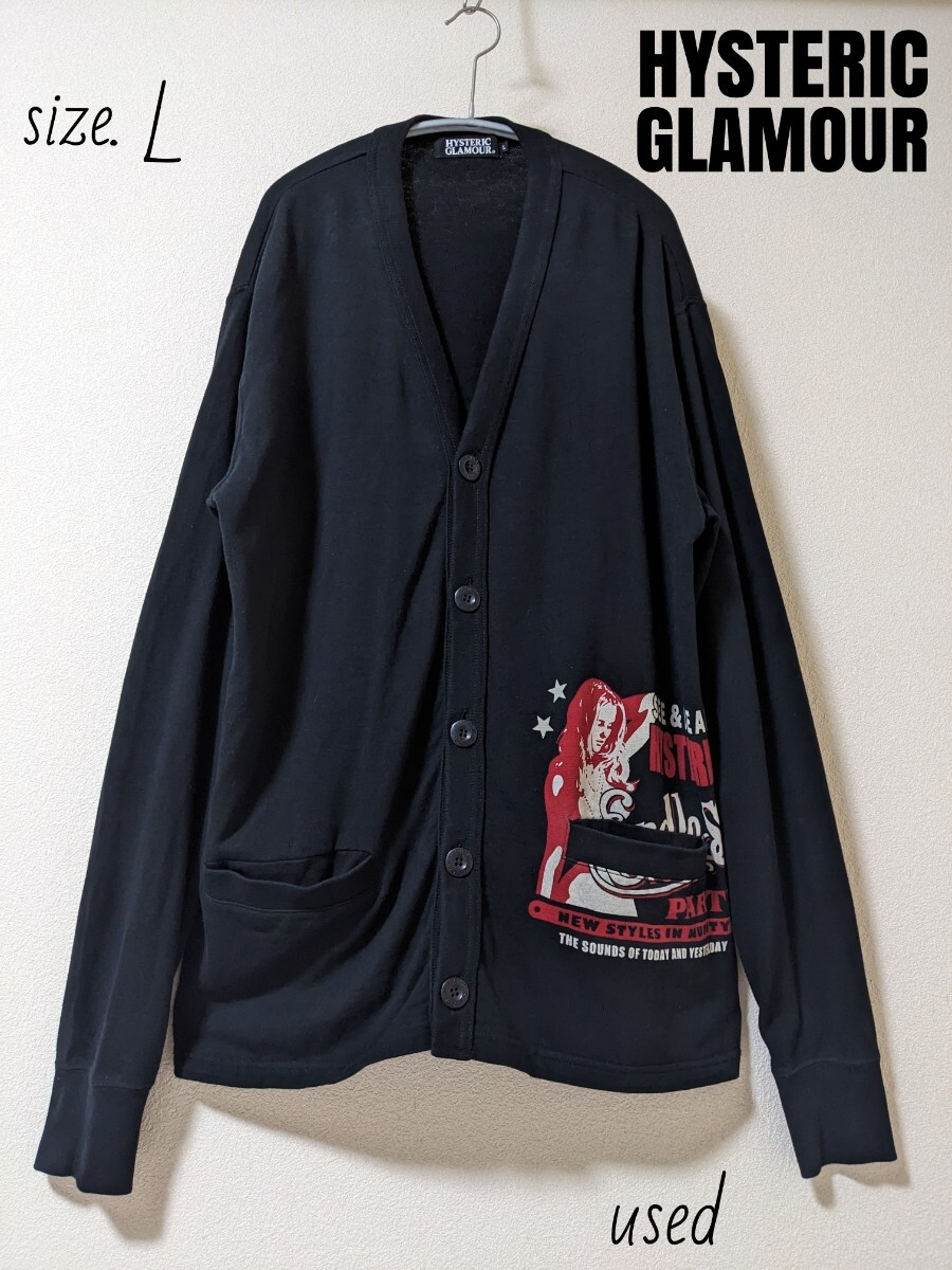 - ヒステリックグラマー ヒスガール カーディガン L ブラック 黒 薄手 スウェット Vネック 男女兼用 メンズ レディース HYSTERIC GLAMOUR