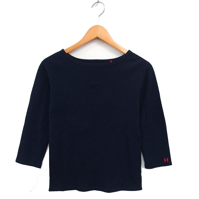 > ハリウッドランチマーケット HOLLYWOOD RANCH MARKET ボートネック カットソー Tシャツ コットン 綿 無地 七分袖 XL 紺 ネイビー