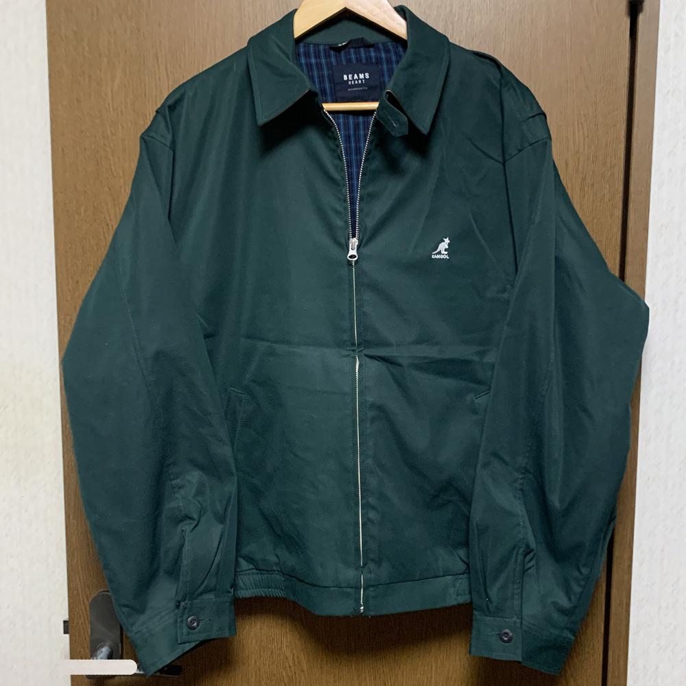 > M【BEAMS HEART × KANGOL|ジャンパー】ビームスハート × カンゴール グリーン系 スイングトップ ブルゾン コラボ オーバーサイズ XXL