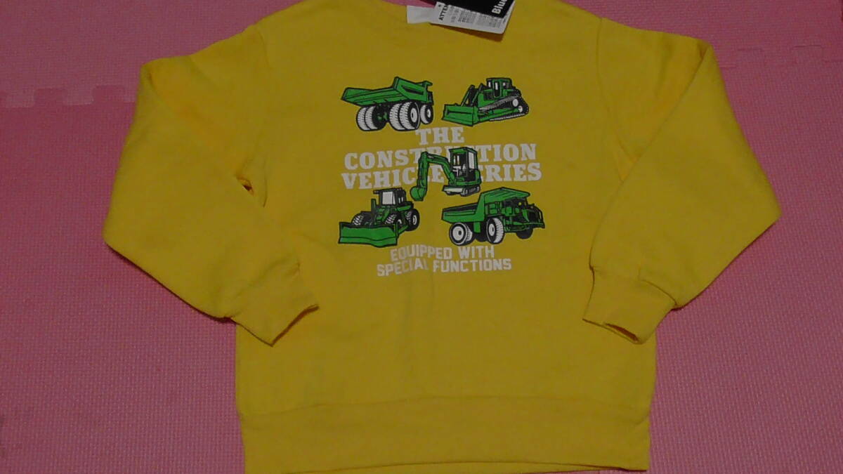 > 新品 130 働く車柄 長袖トレーナー パワーショベル ブルドーザー オフロードダンプトラック 重機 子供 男の子 冬物 裏起毛 120〜 送料無料