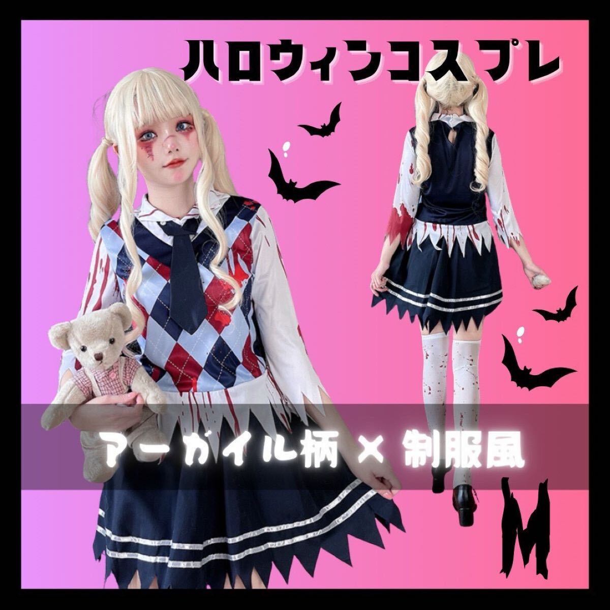 - 【数量限定!】コスプレ 制服風 アーガイル柄 M 仮装 衣装 吸血ハロウィーン