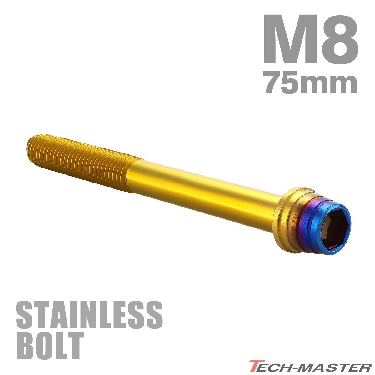- M8×75mm P1.25 キャップボルト テーパーシェルヘッド ステンレス ゴールド×焼きチタンカラー エンジン 車 バイク カスタム 1個 TB0941
