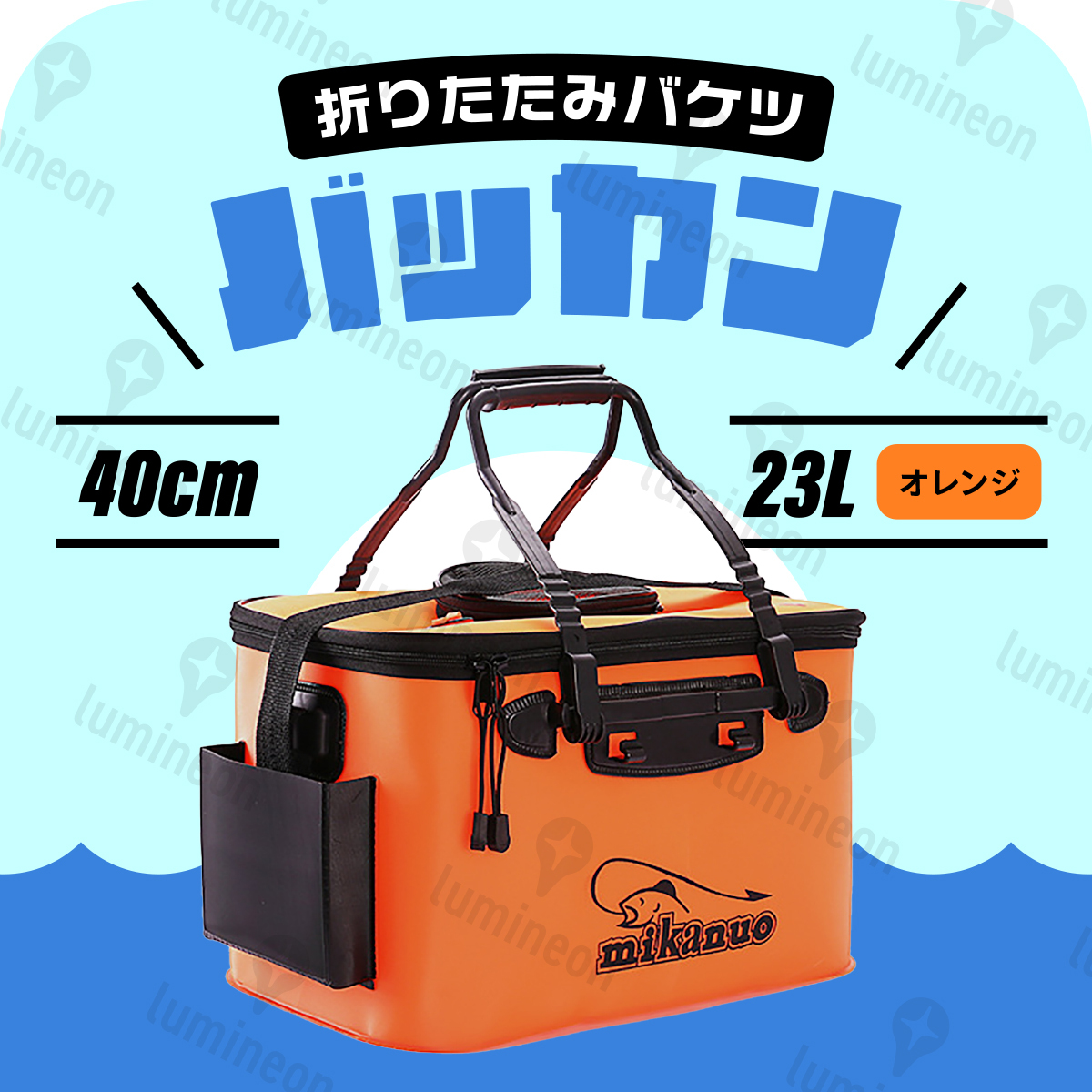 > バッカン 40cm 折りたたみ 釣り バケツ フタ付き 水汲みバケツ 肩掛け ショルダー 小さい 袋 ホルダー 魚 バケツ 大容量 メッシュ g040bc 3