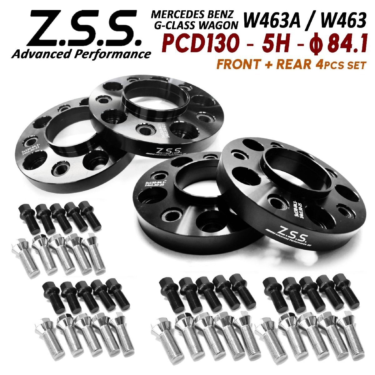 > Z.S.S. AP 【4枚セット】 21mm + 25mm Mercedes Benz G-Wagon W463A PCD130 5穴 5x130 84.1φ 別止め スペーサー ベンツ Gクラス ボルト付
