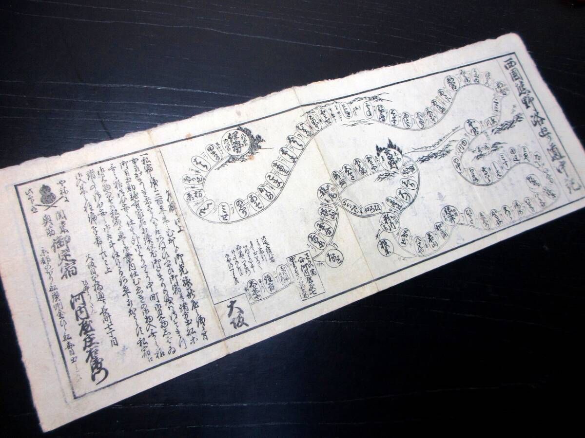- ★R24幕末~明治期宿屋引札「西国熊野路廻り道中記」1点/大阪河内屋庄右衛門/古書古文書/木版両面摺り