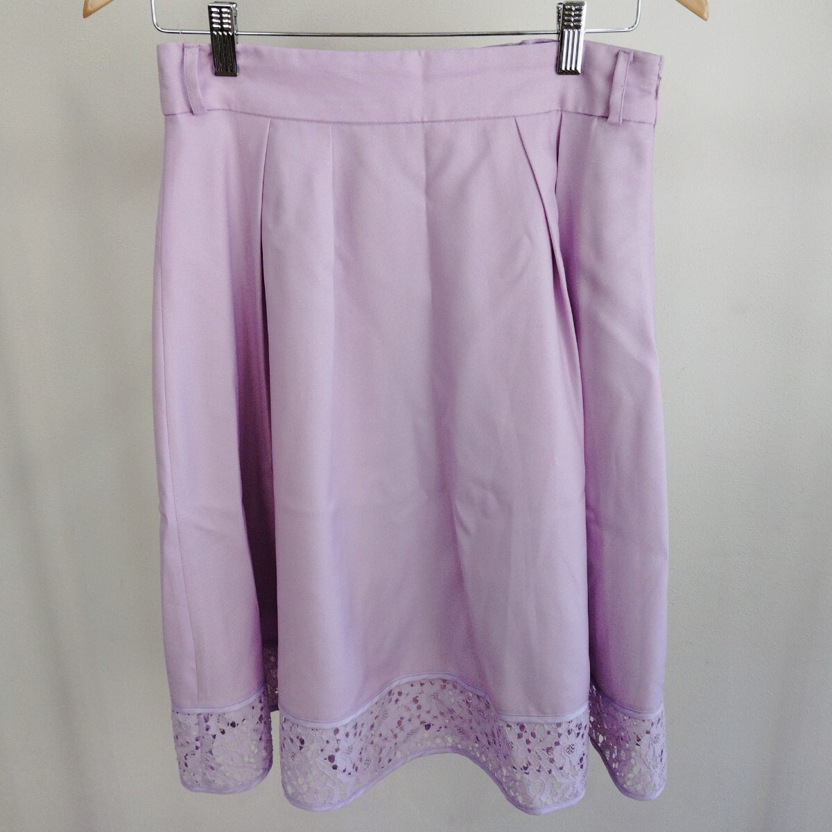 - 0919/L/Rewde レディース スカート フレア ひざ丈 レース パープル