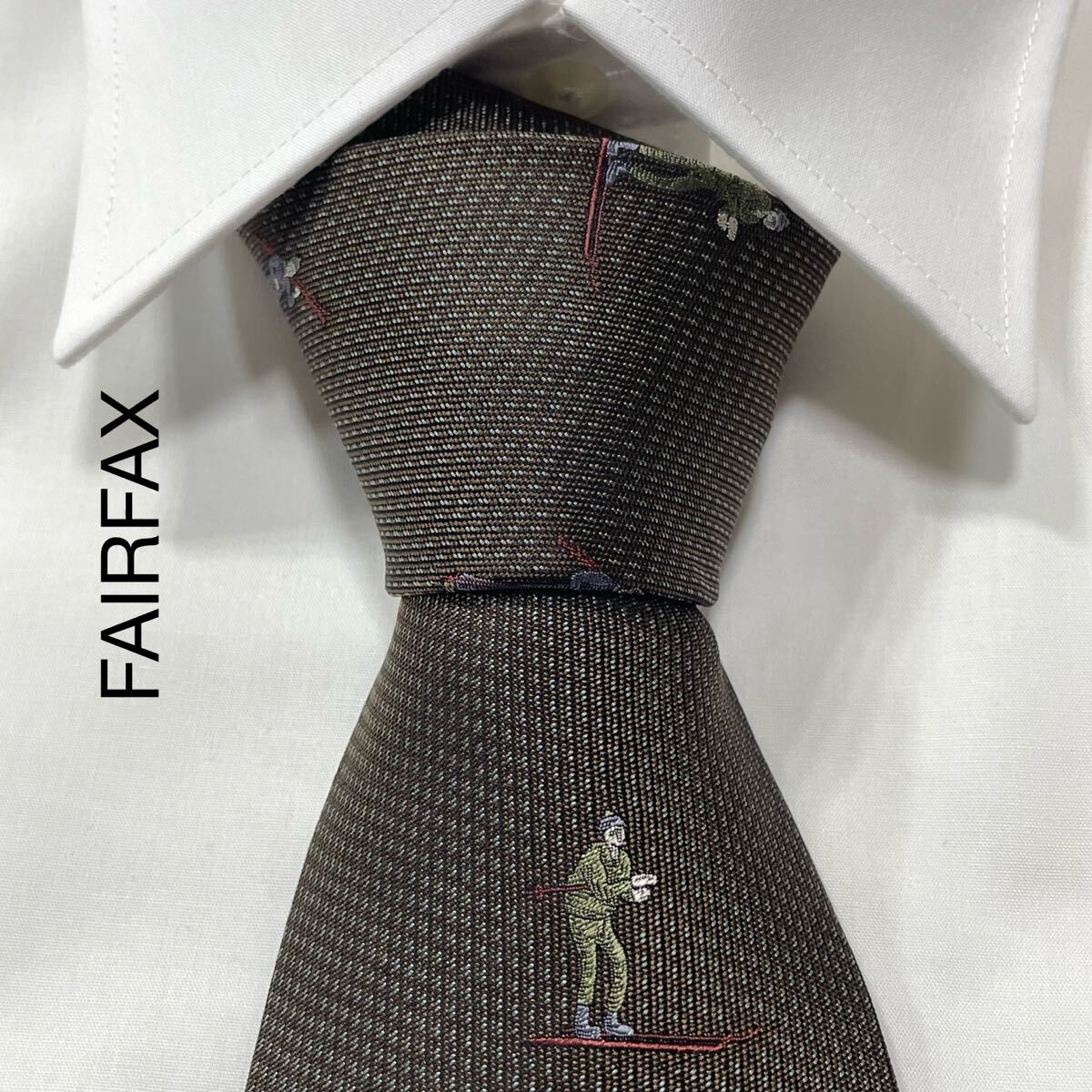 - FAIRFAX フェアファクス スキー ドット ジャガード シルク ネクタイ 日本製 ブラウン TG2882