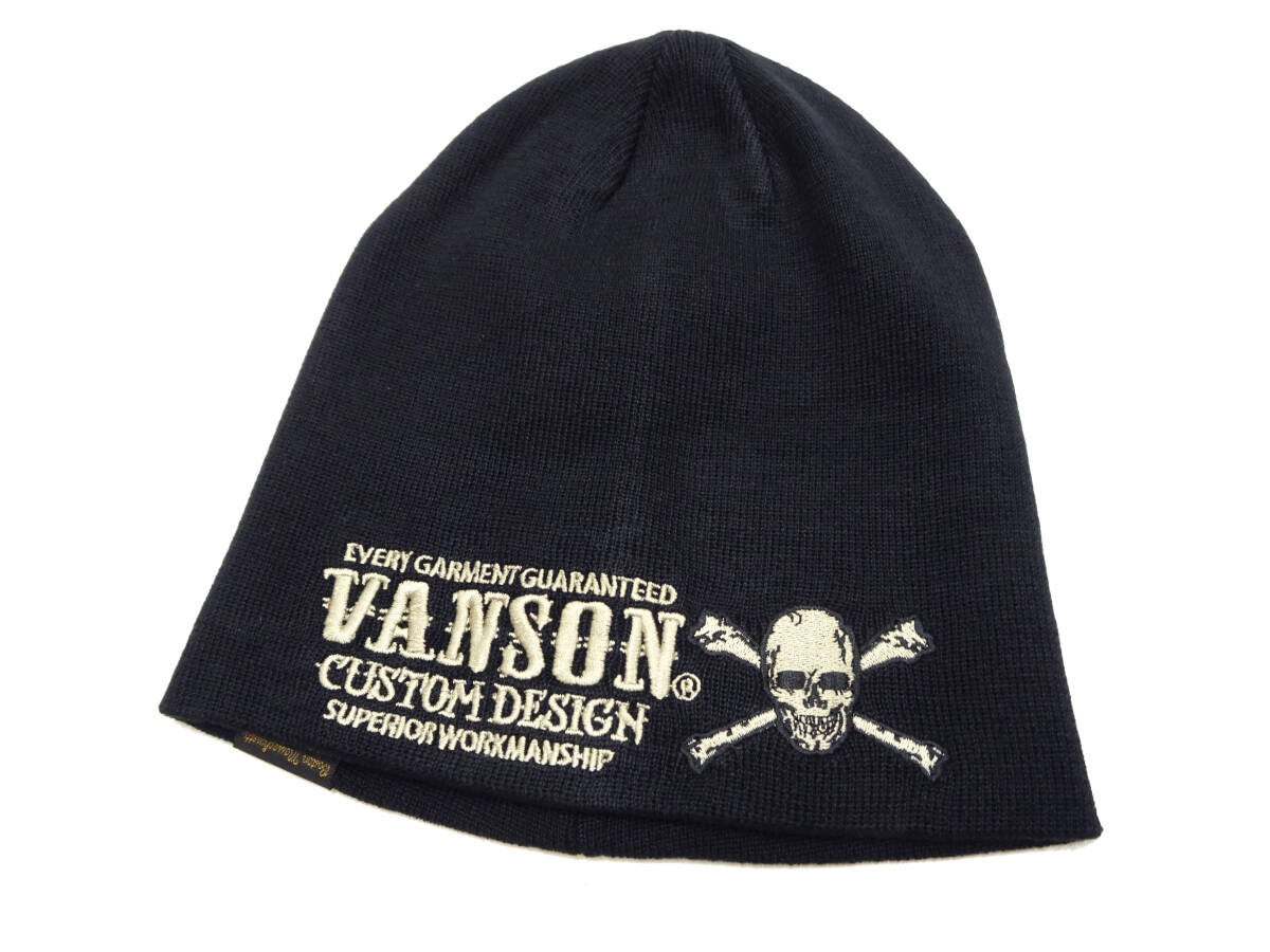 - バンソン コットン ワッチキャップ VANSON ニット帽 ビーニー ロゴ刺繍 NVCP-2514 BLACK-A(刺繍糸:生成り系) 新品