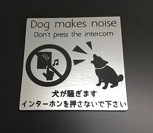 - アクリル製 ポストプレート 玄関 宅配 ドア プレート 5cm×5cm 犬が騒ぎます インターホン押さないで シルバー ステンレス 送料無料