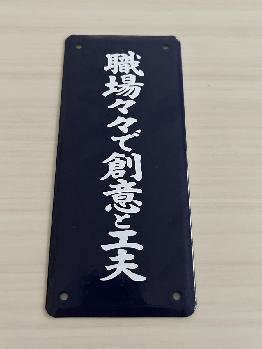 - 職場々々で創意と工夫 ホーロー製 ホーロー看板 看板 昭和レトロ 琺瑯看板 アンティーク プレート