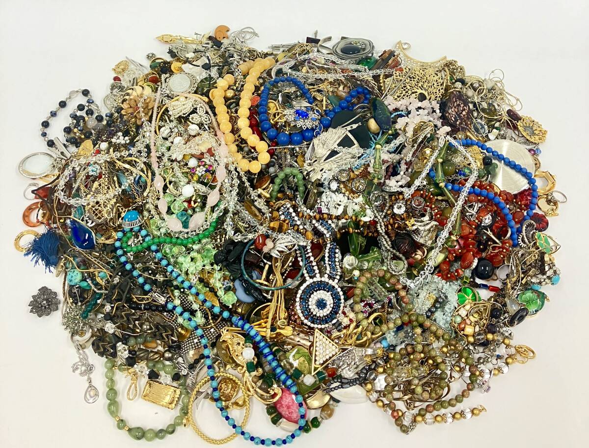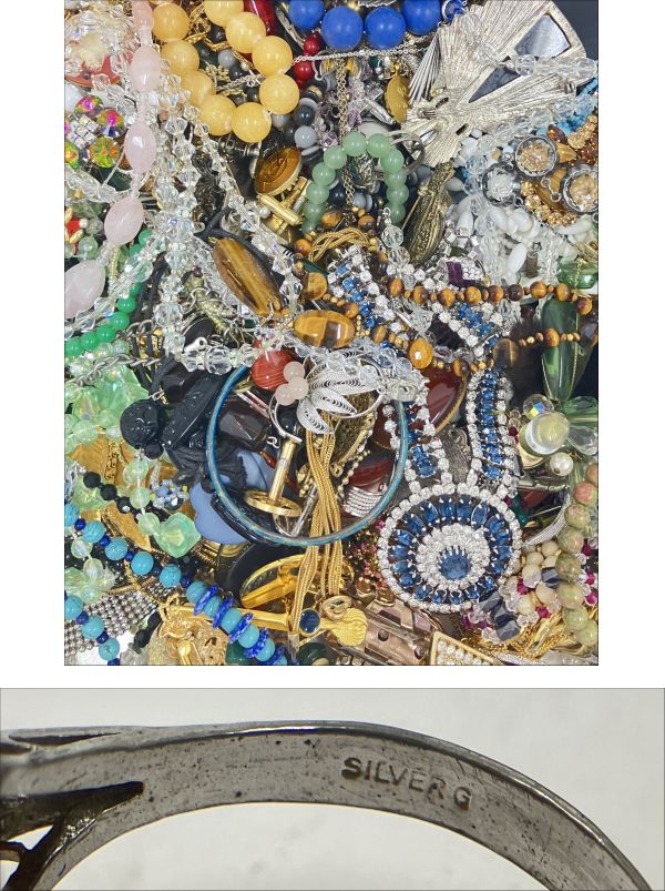 > H09193 1円出品 イミテーション 天然石 カラーストーン メッキ ネックレス リング 他 SILVER 含む アクセサリー 大量 おまとめ 約 10キロ