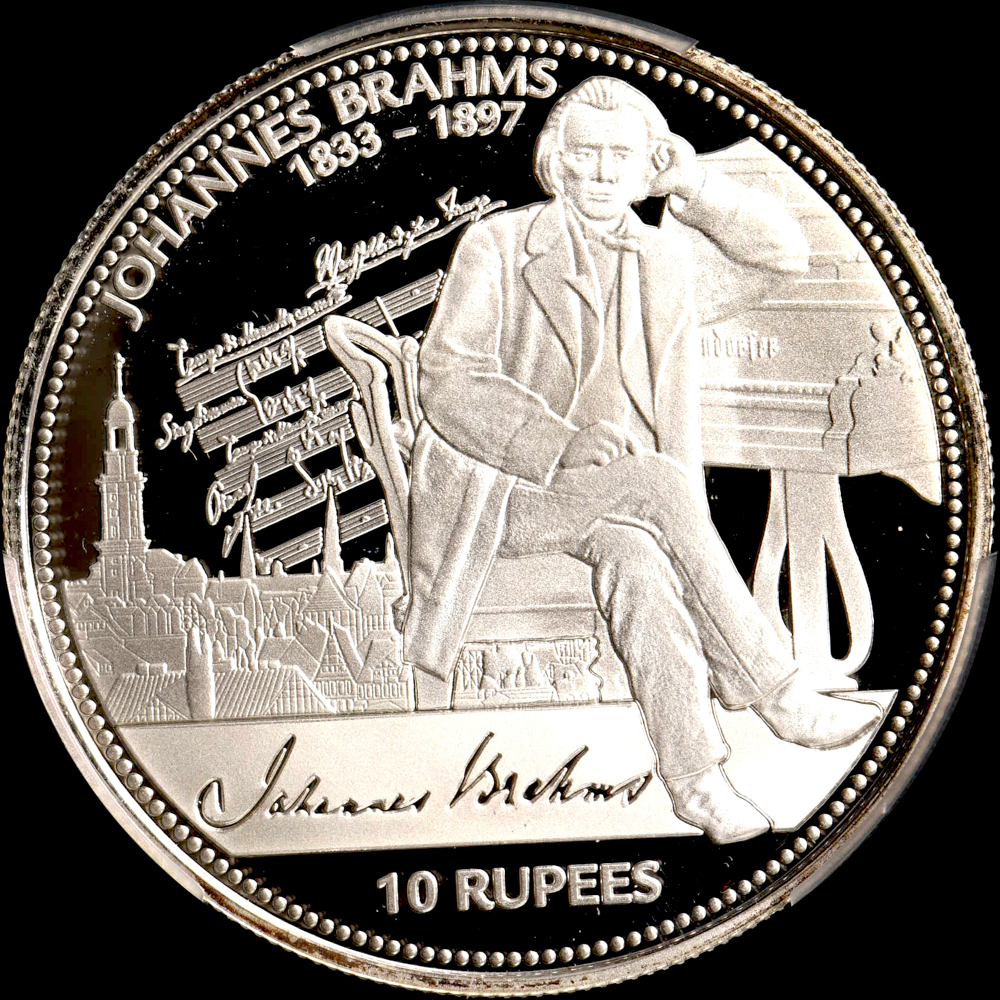 - ★金終 【PCGS PR67DCAM ★P社唯一のTOP最高 発行5000枚】2014 セーシェル ヨハネス・ブラームス 10Rup銀貨【決済期限火曜日】