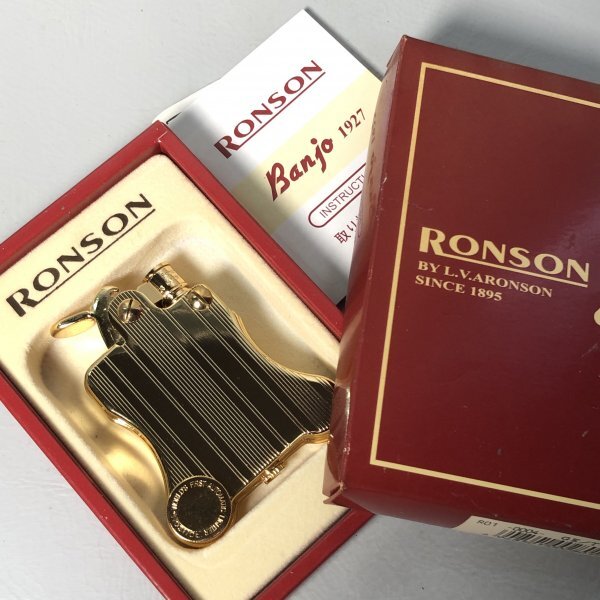 - 未使用品 【 RONSON ロンソン 】 Banjo 1927 バンジョー ゴールドカラー 箱 取説付き 火花確認済み 喫煙具 喫煙グッズ ■ 本760 東