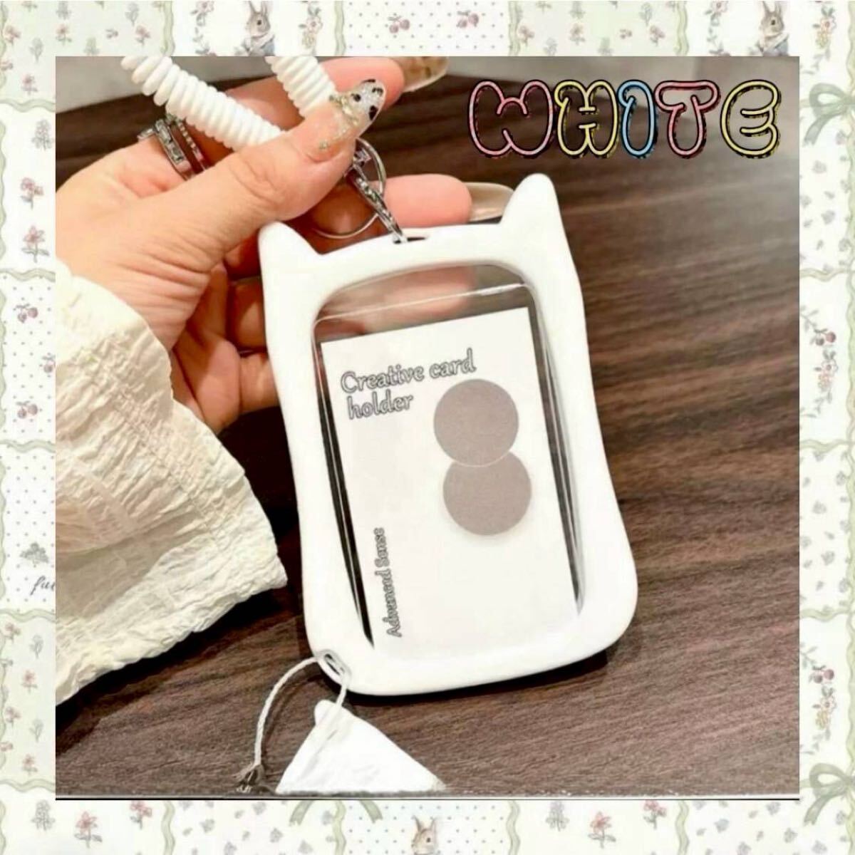 - 猫耳 トレカケース パスケース 定期入れ キーホルダー チェキ 推し活 ホワイト
