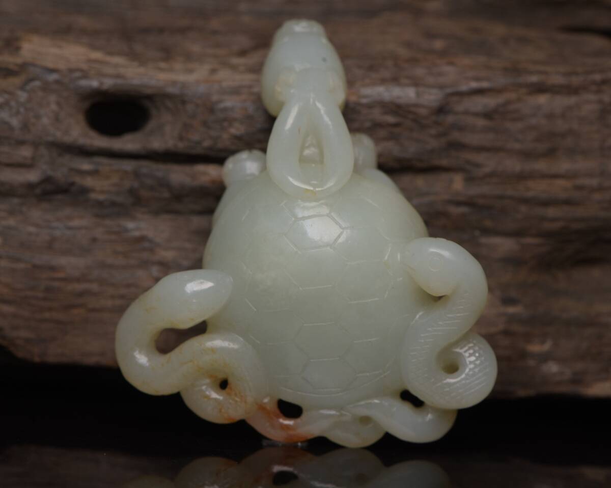 - 『館蔵珍品 和田玉製 細密彫 龍龜 置物 賞物』文房具 書道品 貴重物品 収蔵品 中国古美術 時代物 古董品