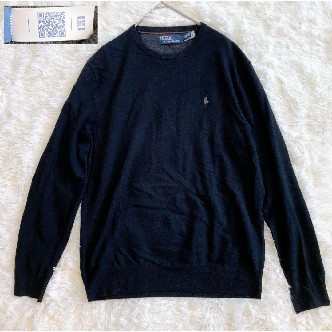 > 復刻現行QRタグ POLO by RALPH LAUREN ポロバイラルフローレン 薄手ニット セーター Mサイズ 黒 ブラック クルーネック