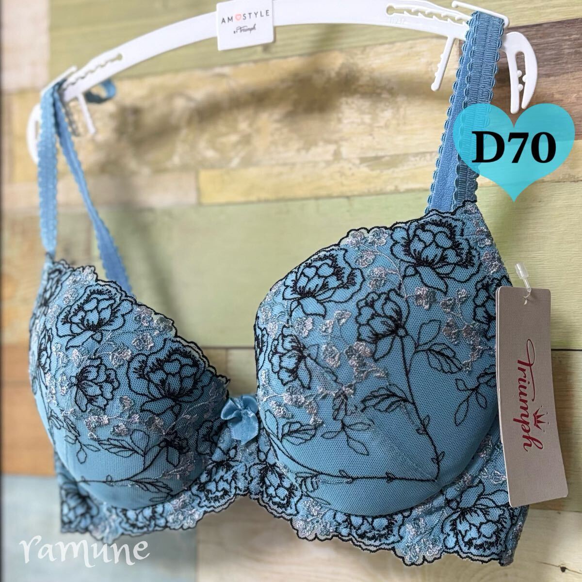- ラスト【トリンプ*D70 ブルー】エントリーコレクション 新品 Triumph ブラジャー パッド付き 刺繍 寄せ上げブラ 谷間メイク 定価2750円