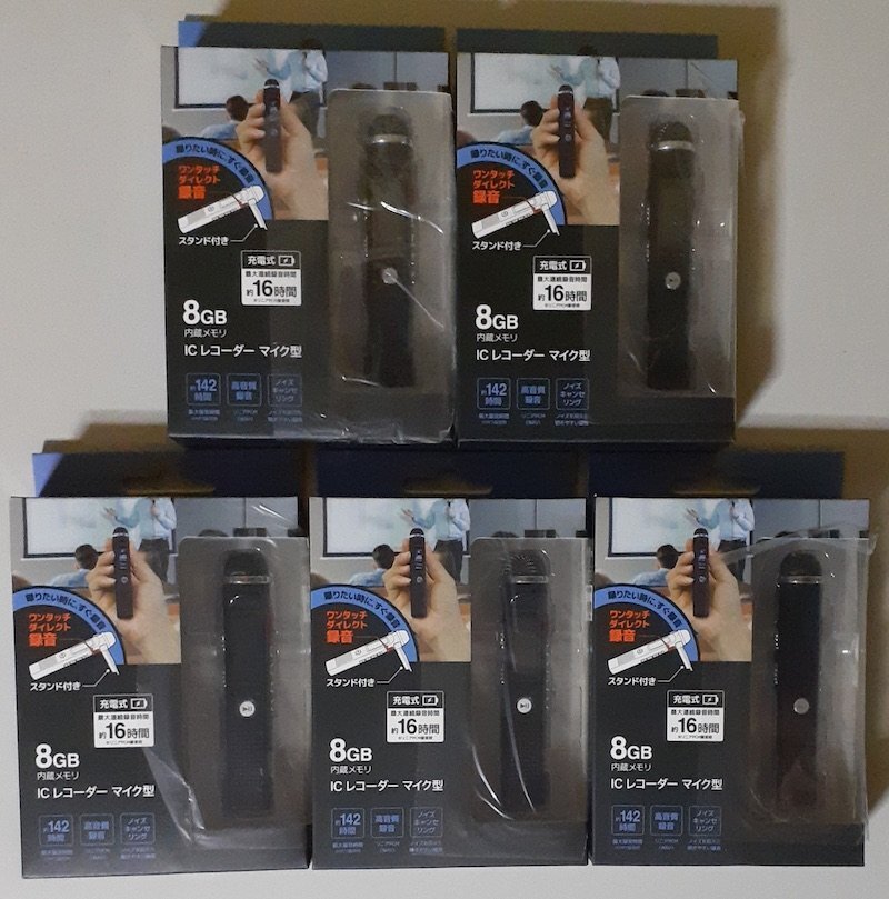 - 6698 ICレコーダー R8GIC-BK 5個セット 内蔵メモリ8GB マイク型 充電式 高音質録音リニアPCM(WAV) ノイズキャンセリング ワイドFM GRANPLE