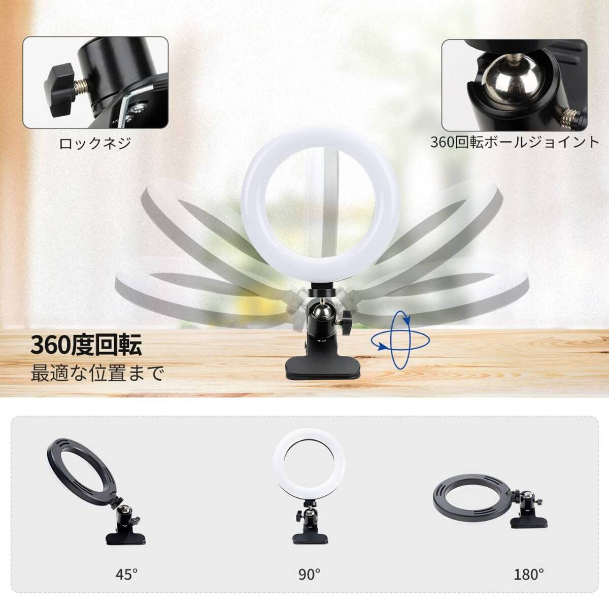 - 6.3インチLEDリングライト 卓上 クリップ式