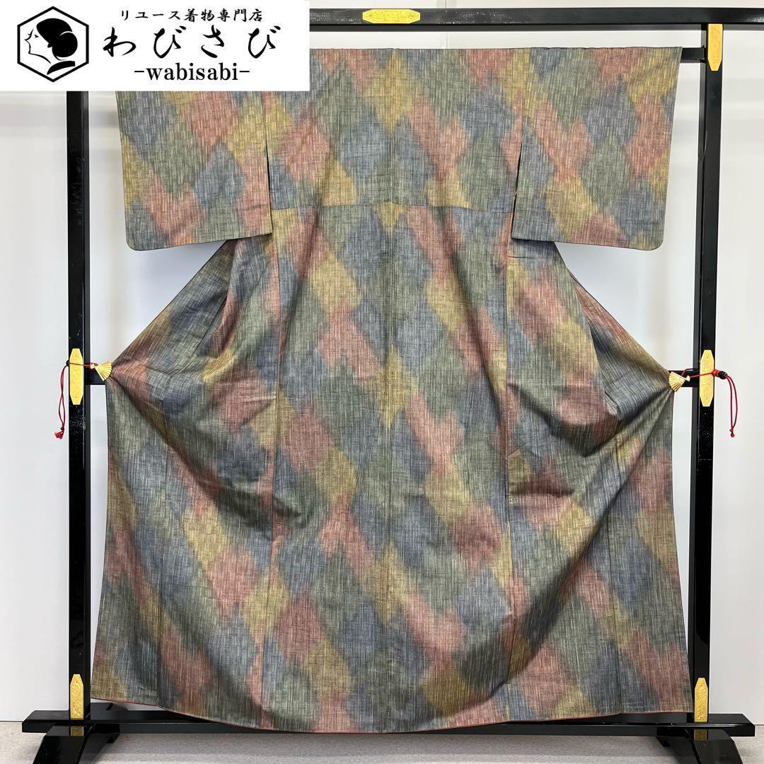 > 紬着物 きりとり紬 草木染 落ち着きのある暈し染 K-3861 着物 きもの kimono 和服 和装 中古 リサイクル着物 【送料無料】