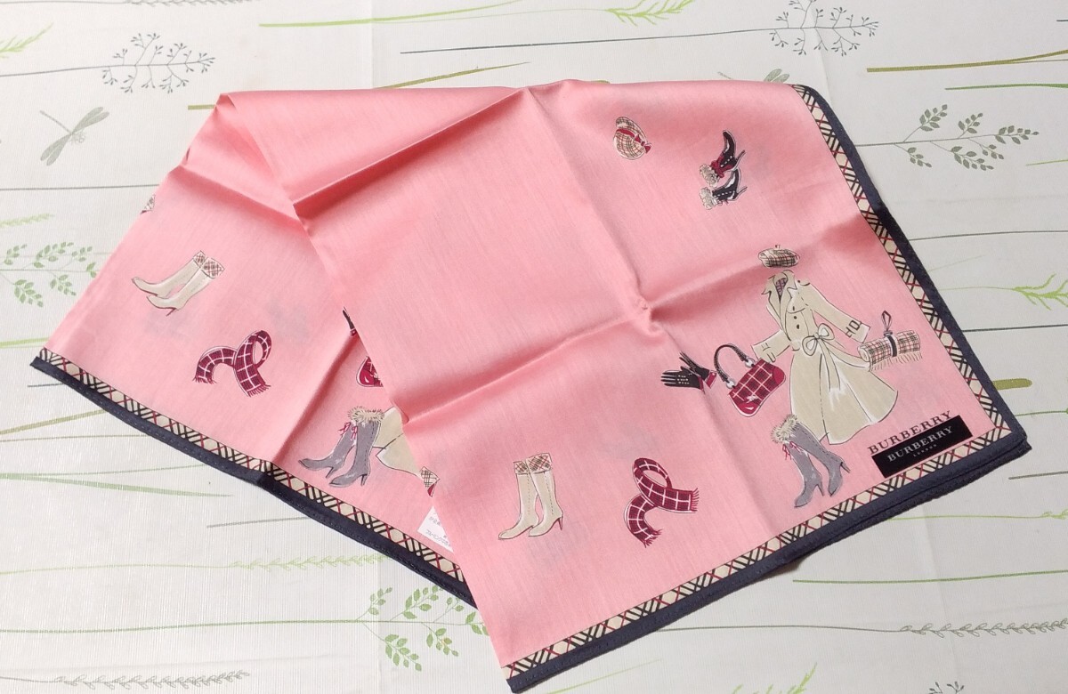- 送料無料! バーバリー トレンチコート ブーツ 柄 ハンカチ 未使用品 ピンク系 日本製