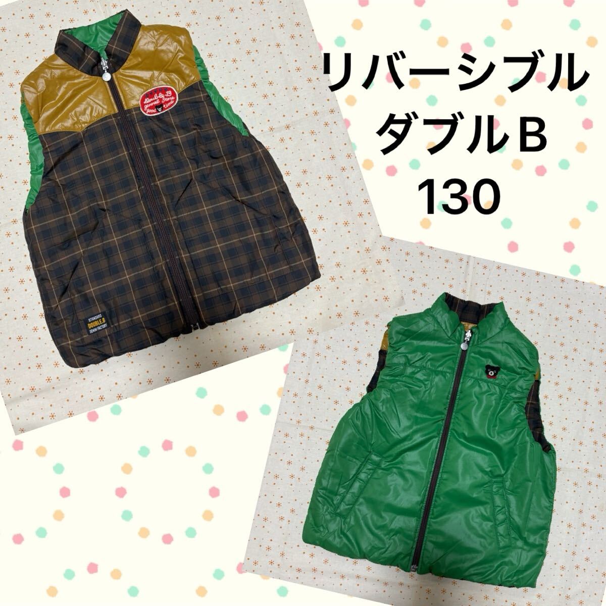 - 送料無料! ミキハウス ダブルB 中綿もこもこ あったか アウターベスト 130 ☆チェック
