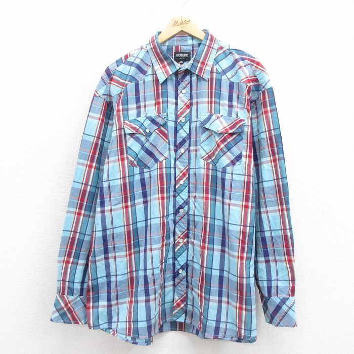 > XL/古着 長袖 ウエスタン シャツ メンズ 大きいサイズ ロング丈 水色他 チェック 25sep17 中古 トップス