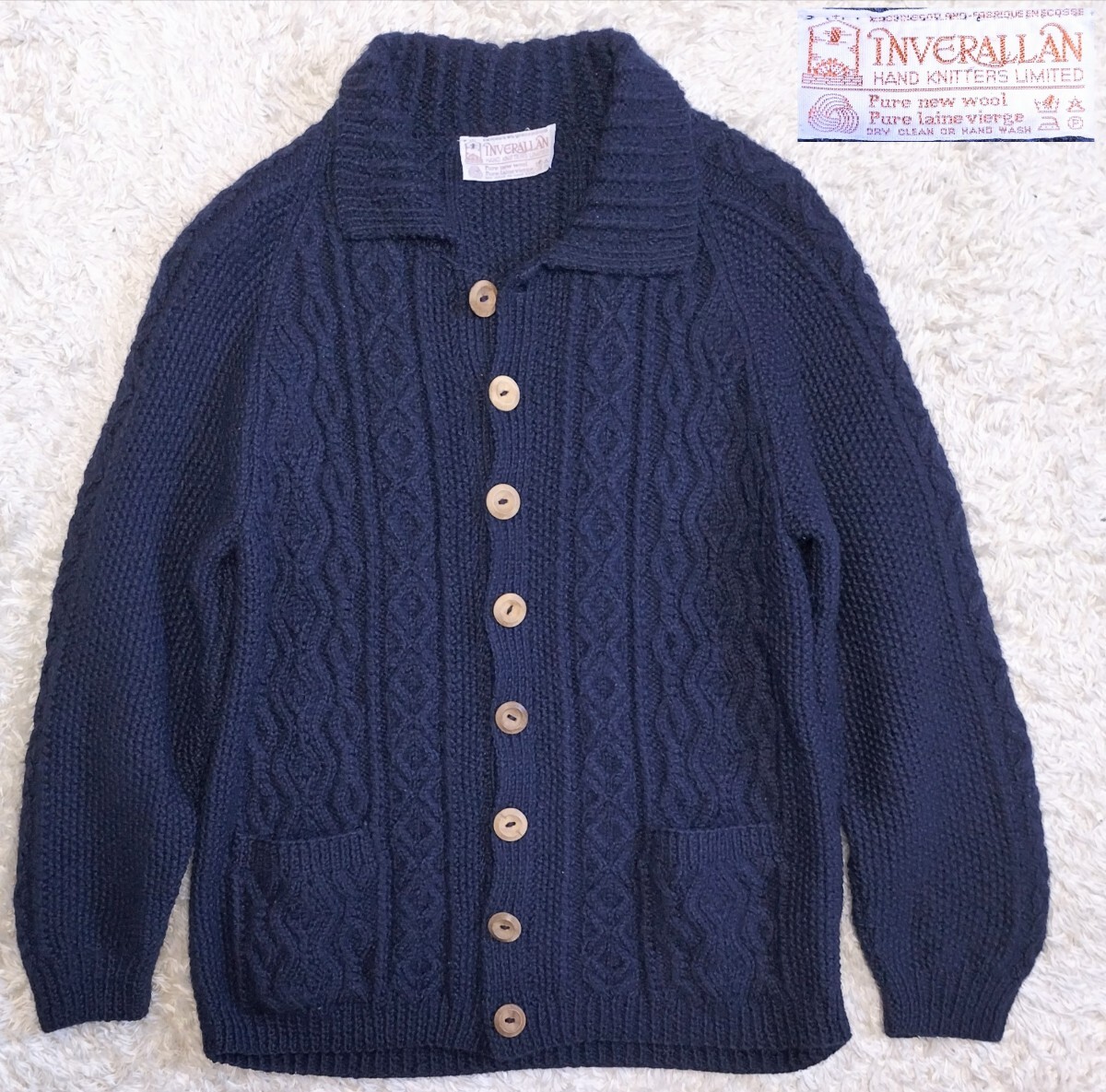 - INVERALLAN アランニットカーディガン/フィッシャーマンニット●ネイビー☆インバーアラン (9ハ)