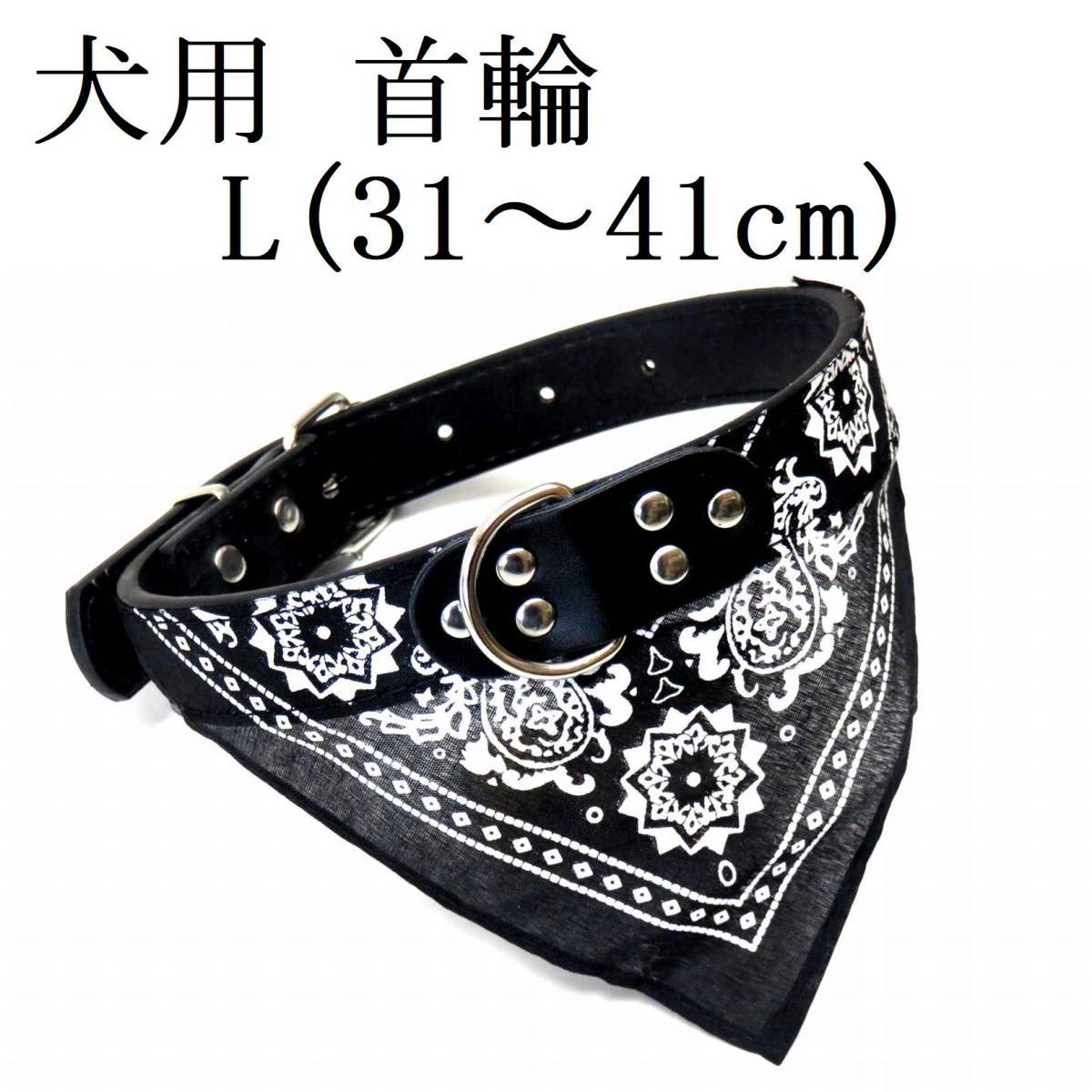 > 首輪 バンダナ付き L 黒 首回31~41㎝前後 幅2.5cm ブラック 犬 中型犬 大型犬 スカーフ PUレザー 室内 ペット用品 散歩 新品 送料無料