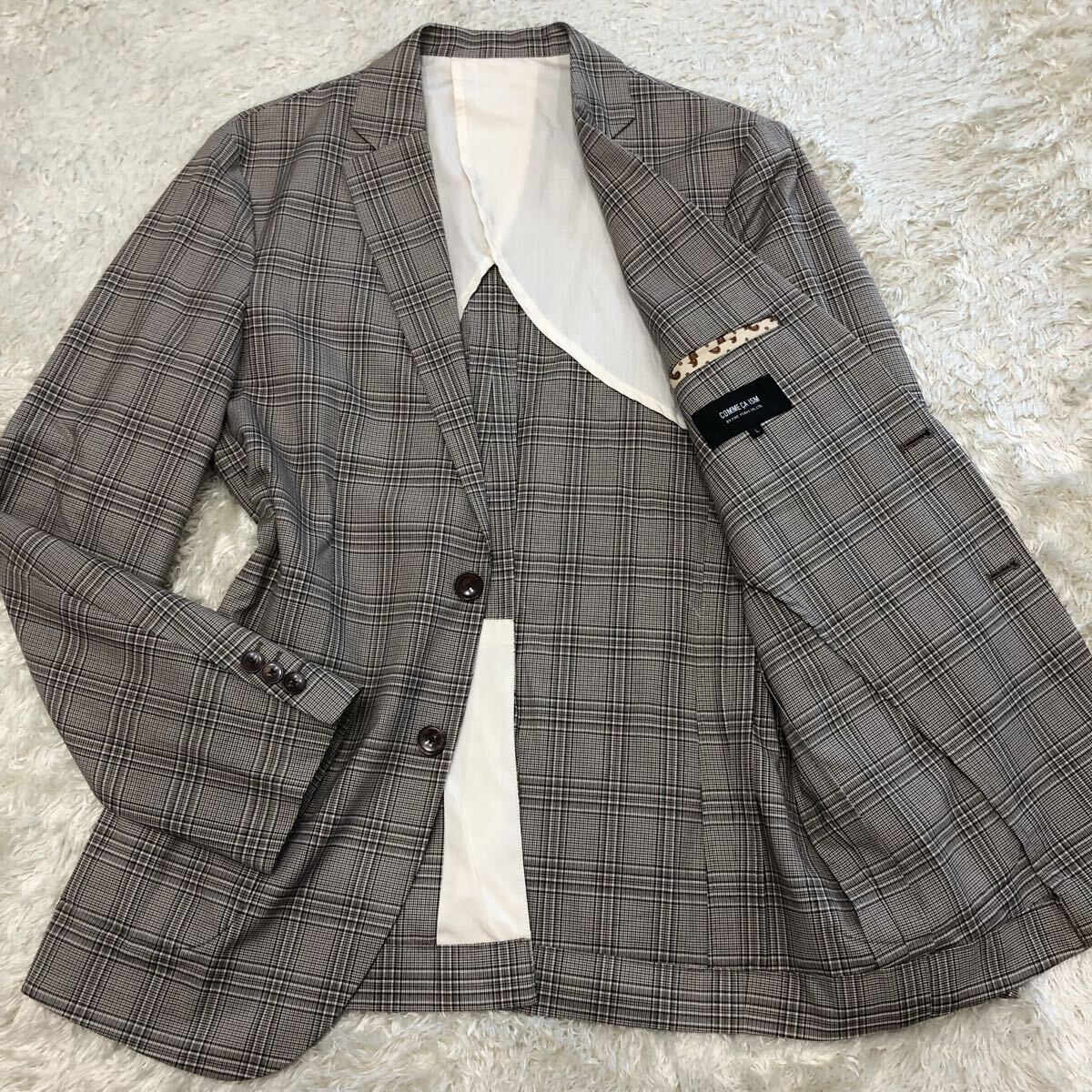 - 希少L!コムサイズム【お洒落の極み】COMME CA ISM テーラードジャケット アンコン グレー チェック 2B 背抜き ストレッチ 艶感 高級感◎