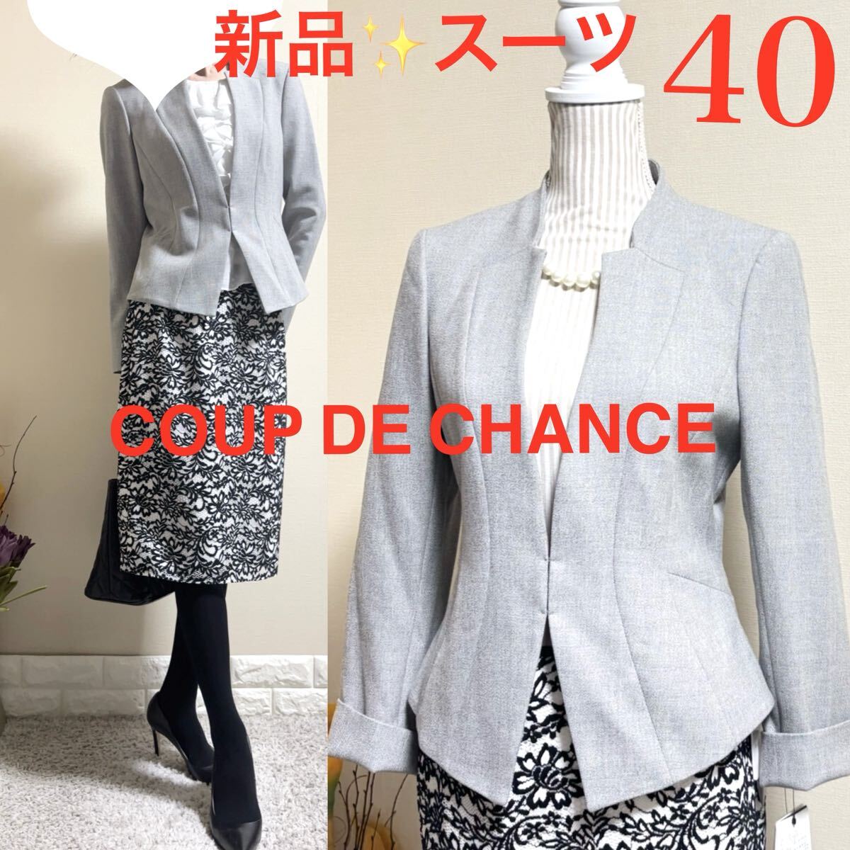 > 新品!COUP DE CHANCE クードシャンス セットアップ スタイル美人スーツ ノーカラージャケット 配色レース 美脚 スカート L 40