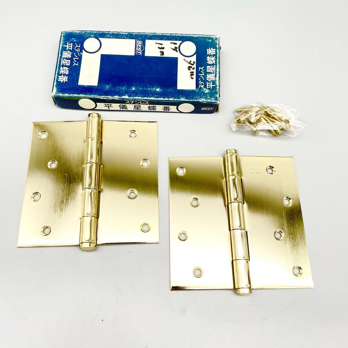 > [送料全国一律360円] ベスト 平義星蝶番 ステンレス 2×102mm ゴールド 2枚 ドア 扉 建具 丁番 ヒンジ BEST 金物屋 在庫品 まとめ 未使用