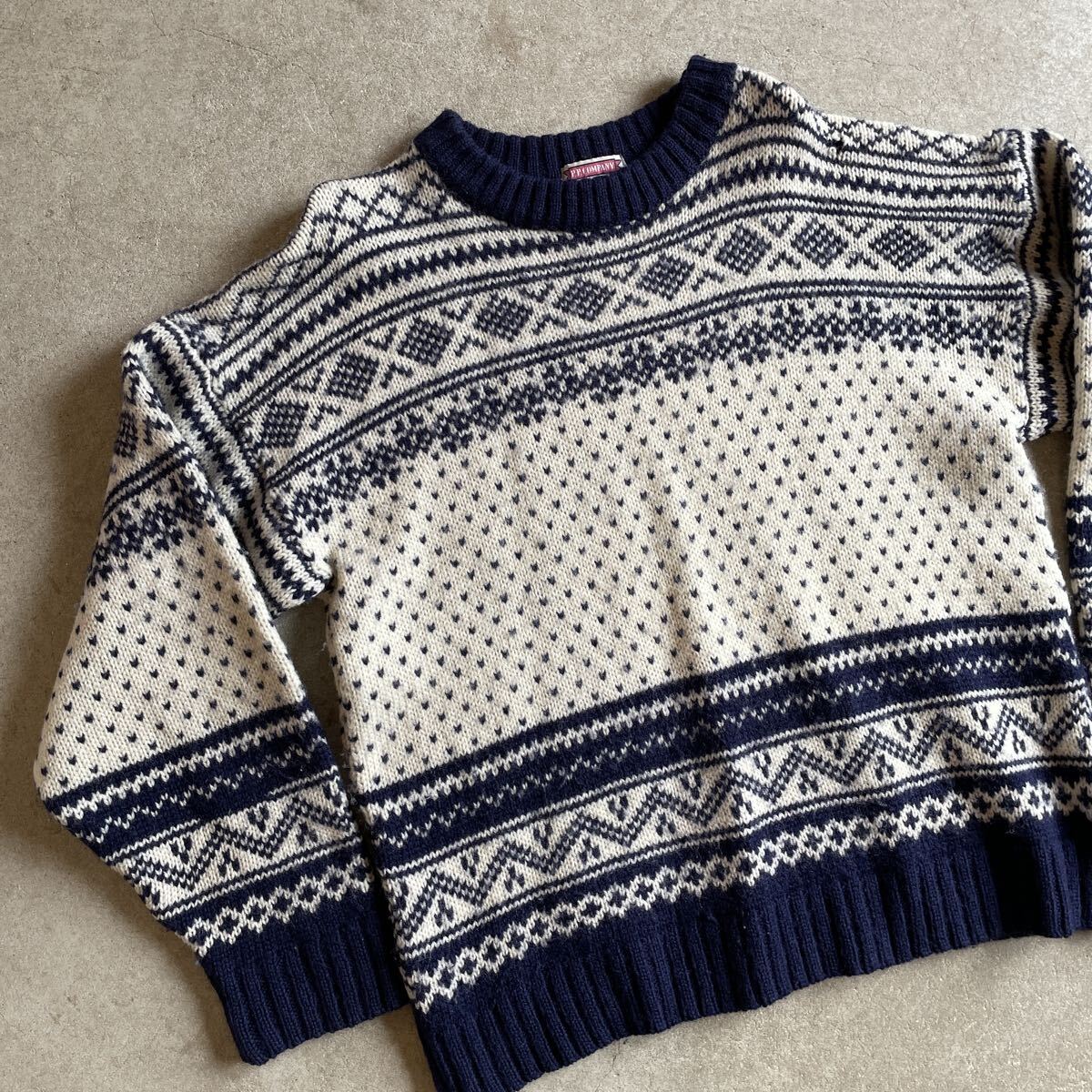 - ビンテージ ヨーロッパ古着 バーズアイ ウール ノルディック柄 ニット セーター5 ヴィンテージ メンズ L ユーロ古着