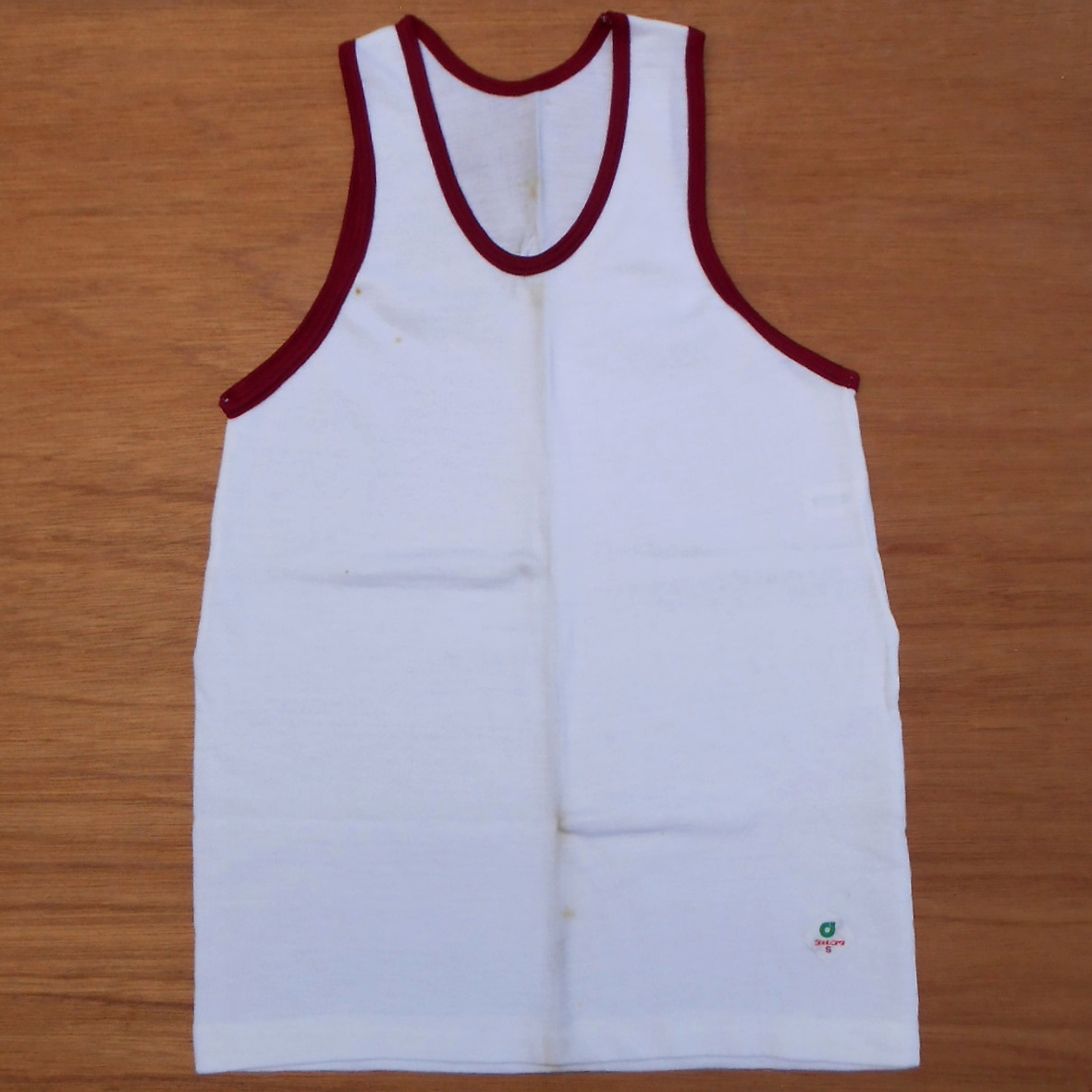 - 未使用 '70s Jelenk ジェレンク 白xボルドー S ランニングシャツ タンクトップ 運動着 ヴィンテージ 昭和 レトロ 当時物 asics アシックス