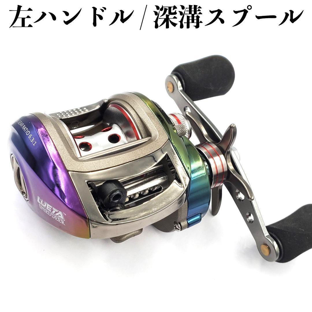- YU134L リール ベイトリール 釣りリール 左巻き 深溝スプール マルチカラー 遠心ブレーキ マグネットブレーキ ダブルブレーキ 軽量 遠投