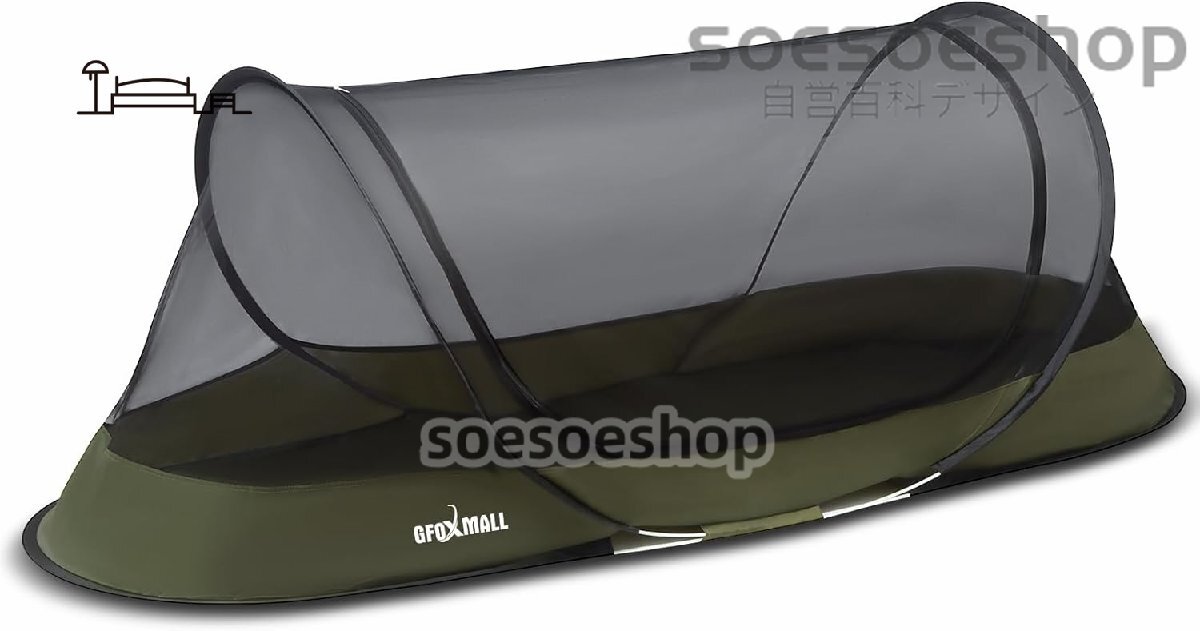 - ポップアップテント 1人用 開くだけ 簡単設営 マット横幅75cm インナーテントソロ コット 車中泊 ポップアップメッシュテント