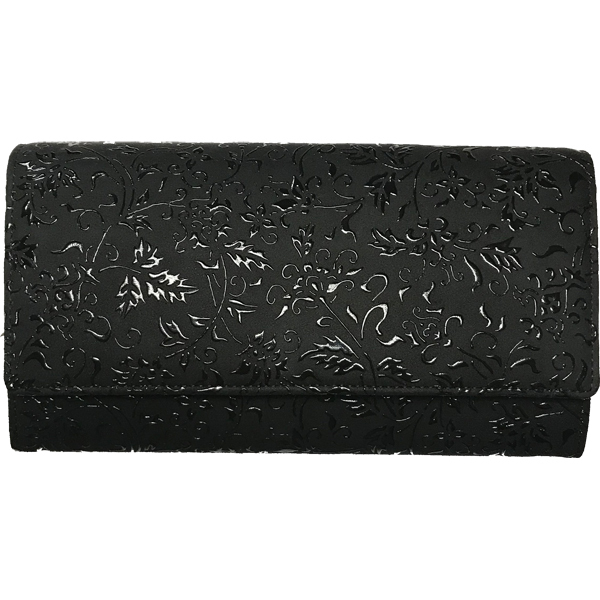 - 印伝長財布 印傳屋上原勇七 INDEN-YA No.2306束入れ 041花唐草 黒地黒漆