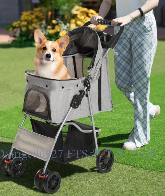 - ★新品ペットカート 4輪 ブラウン 耐荷重15kg 折りたたみ 軽量 ペットバギー 中型犬 小型犬 介護 散歩 犬 猫